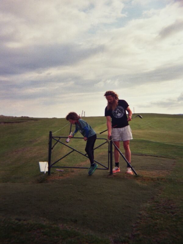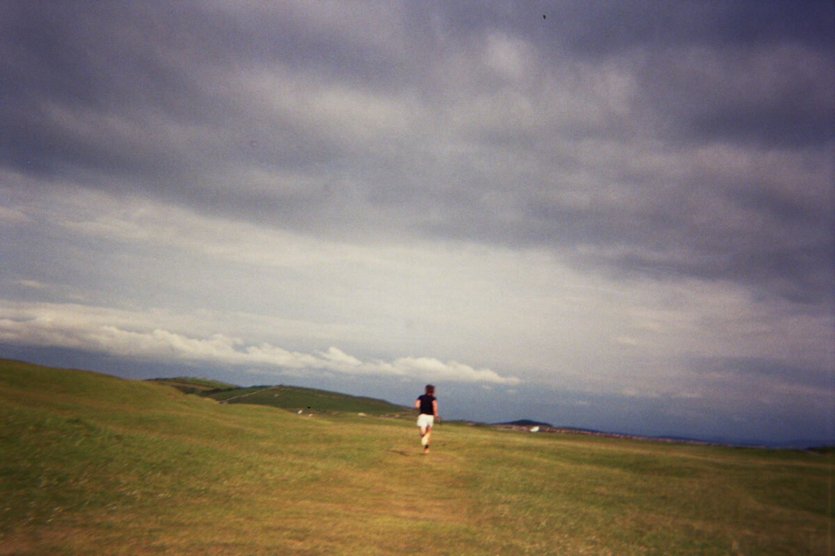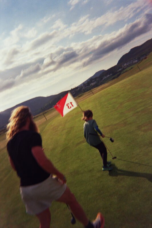 “So, the first thing I’d say to you is to just make up your own format because all formats were invented at some point” Rob told me as we sat down at the kitchen counter. I really should have expected the warm Irish welcome by himself, his wife Ruth, a number of children and a jumpy dog. Toys, books, and other stuff were scattered around the place. The house gave off the kind of lovely, playful and slightly chaotic atmosphere you’d want to be a child in. Not to mention the 9 holes of unspoilt, affordable and rarely busy links golf at its doorstep. I had asked Rob to teach me the ways of speedgolf for this article. Also, I had suggested that we take out a disposable analog camera to capture the whole experience, because, well, I don’t really know why.