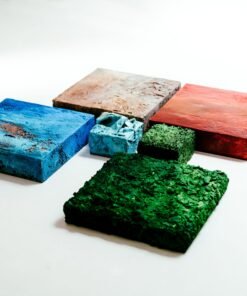 The objects’ standardized forms and dimensions are reminiscent of childhood building blocks. They invite us to constantly arrange and rearrange, to build our very own fleeting landscapes.
